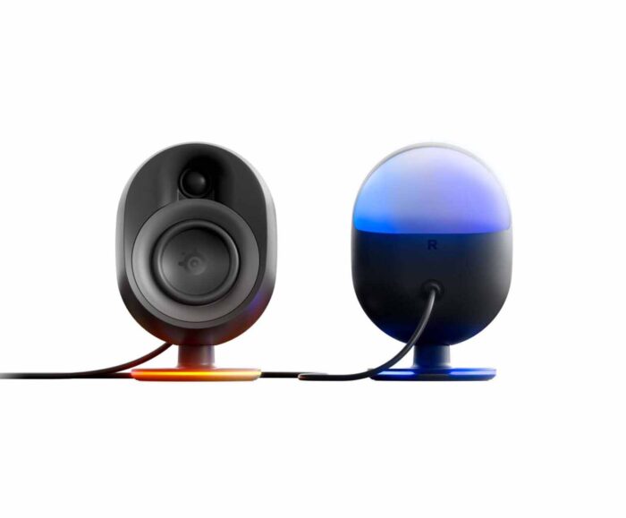 این اسپیکر جذاب برند استیلسریز از RGB هم پشتیبانی میکند. نور رنگی هم از زیر اسپیکرهای تکی و هم از بالای آنها منتشر میشود و هم خود اسپیکرها را جذابتر میکند و هم باعث زیباتر شدن میز گیمینگتان که قرار است اسپیکرها را روی آن قرار دهید میشود. در ضمن، این RGB واکنشی است و به موسیقی در حال پخش واکنش نشان میدهد.