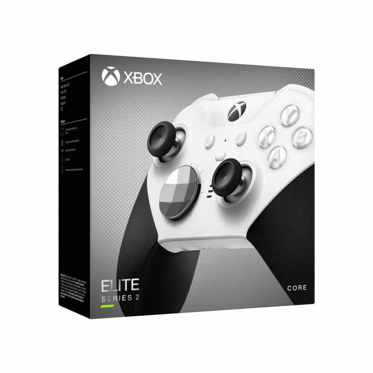 کنترلر الیت سری 2 Core فاقد پایه شارژ، کیف، دکمههای جهتهای چهار جهت، چهار آنالوگ اضافه و چهار عدد پدال است و فقط دارای کابل USB-C و پیچ مخصوص تعویض دکمهها است. اگرچه این کنترلر فاقد لوازم جانبی کنترلر الیت سری 2 است اما با دکمهها و آنالوگهای قابل تعویض این کنترلر سازگاری دارد و باید آنها را جداگانه تهیه کنید.