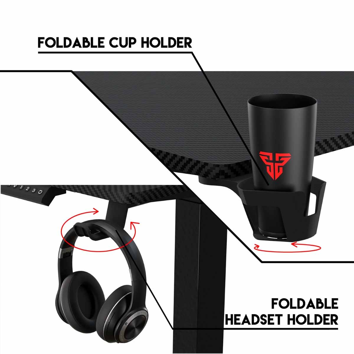 نکتهی مثبت دیگر اینکه میز گیمینگ Fantech Desk GD914 Brown بدنهای فولادی دارد و بنابراین میتوانید روی دوام آن برای چندین سال متوالی حساب کنید. این میز گیمینگ همچنین دارای نگهدارنده برای لیوان است. لیوان آبتان را حین بازی روی میز قرار ندهید و در عوض آن را در مکان مخصوصی که میز دارد بگذارید و به این ترتیب احتمال ریزش آب روی کیبورد و میز را از بین ببرید. در آن سمت هم یک نگهدارنده برای هدست در نظر گرفته شده تا با آویز کردن هدستتان روی آن، از آسیبهای احتمالی به هدست جلوگیری کنید.