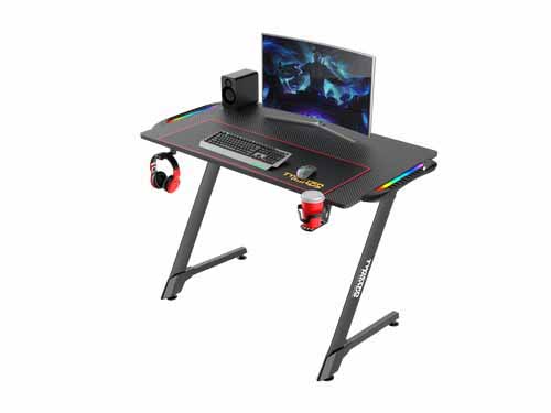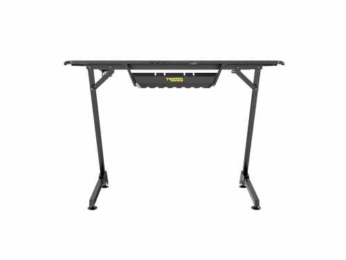 این میز گیمینگ از آلیاژ فلز ساخته شده و استحکامی بالا دارد. اگر به‌دنبال خرید میز گیمینگی برای استفاده‌ی طولانی‌مدت هستید، قطعاً روی این میز گیمینگ حرفه‌ای می‌توانید حساب کنید. برای قسمت روی میز از فیبر کربن P2PB استفاده شده‌است. این قسمت به‌گونه‌ای طراحی شده که اجسام امکان لیز خوردن نداشته باشند. در ضمن، در جعبه‌ی این میز گیمینگ، یک پد ماوس قرار دارد که می‌توانید آن را روی میز قرار دهید. این پد ماوس البته بزرگ است و کیبورد را هم شامل می‌شود.