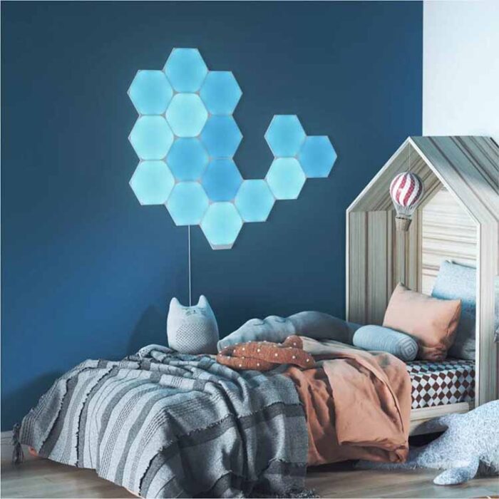 لامپ‌های نانولیف، فصل جدیدی از دکوراسیون اتاق‌های گیمینگ و سرگرمی را معرفی می‌کنند و نمونه‌ای از دکوراسیون ماژولار هستند. پک Starter Kit این لامپ‌ها، شامل 15 عدد پنل LED است که به هم متصل می‌شوند و با حسگرهایی چون صفحه‌های لمسی، قابلیت تشخیص موسیقی و انعکاس تصویر، فضای اتاق شما را دگرگون می‌کنند. ترکیب تکنولوژی هوشمند و طراحی مدرن و مینیمال به شما اجازه می‌دهند تا به خلاقیت خود بال و پر بدهید و هر گونه که می‌خواهید، با چینش‌های مختلف، اتاق خود را تزئین کنید. این پنل‌ها با استفاده از تکنولوژی Connect+ به هم وصل می‌شوند و شکلی یکپارچه را تشکیل می‌دهند و با توجه به موسیقی در حال پخش، شاهد رقص نورهای بسیار جذابی خواهید بود.