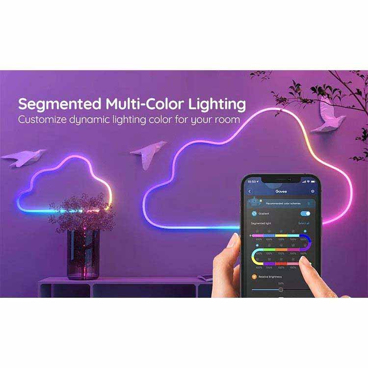 از دیگر مشخصات و ویژگی هایی که برای چراغ نئونی 3 متری گووی Govee Neon Rope RGBIC باید در نظر داشته باشید، آن است که به سادگی می توانید با استفاده از بلوتوث یا وای فای به این محصول متصل شوید. نرم افزار Govee Home به شما این امکان را می دهد که برای هر قسمت از این چراغ نئونی، از میان 16 میلیون رنگ، رنگ مورد نظر خود را انتخاب کنید.