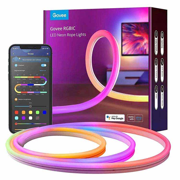 استفاده از چراغ نئون برای نورپردازی اتاق خواب و اتاق گیمینگ می تواند یکی از بهترین انتخاب های پیش روی شما به شمار رود. در نظر داشته باشید که چراغ نئونی 3 متری گووی Govee Neon Rope RGBIC یکی از بهترین محصولات این عرصه شناخته می شود که از کیفیت بسیار بالایی برخوردار بوده و شما می توانید از آن برای استفاده روزمره استفاده داشته باشید. باید در نظر داشت که چراغ نئونی 3 متری گووی Govee Neon Rope RGBIC با وجود سفارشی سازی رنگ ها و پشتیبانی از 16 میلیون رنگ به عنوان یکی از کامل ترین محصولات موجود در بازار شناخته می شود و با قیمتی بسیار مناسب در بازار عرضه می شود. همچنین باید در نظر داشته باشید که برای اتصال به این محصول هوشمند می توانید از اپلیکیشن Govee استفاده داشته باشید.