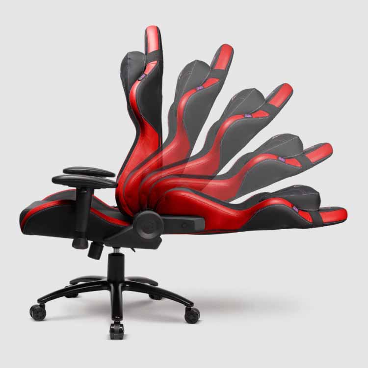پشتی صندلی Cooler Master Caliber R2 دارای قابلیت خم شدن تا ۱۸۰ درجه است و بدون نگرانی بابت شکست پشتی صندلی می‌توانید به آن، به هر اندازه‌ای که می‌خواهید تکیه دهید و پشتی صندلی را به دلخواه خود تنظیم کنید.