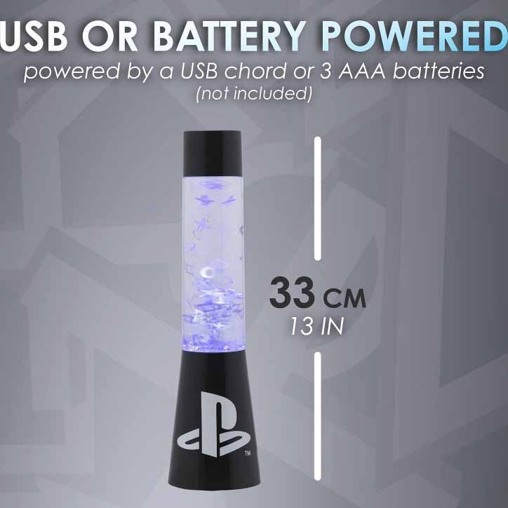 لامپ گدازهای Paladone با طرح ویژه پلی استیشن، دارای آیکونهای محبوب و آشنای پلی استیشن است که درون لامپ شناورند و جلوهای فوقالعاده زیبا به محیط میدهند.